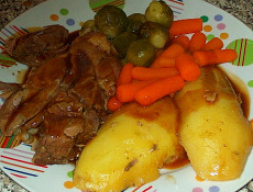 Cover with the lid. If the lid doesn’t fit tightly, cover the dish with foil before popping on the lid. This will keep all the lovely flavours sealed in while the lamb cooks and it will suck in all those delicious juices. When the lamb has been cooking for about 1 hour, lay the sliced potatoes on top of the lamb. They will soak up the wonderful flavours and still stay firm. What you don't want is the potatoes to boil in the water, break up and be greasy. If you need to add more water at any stage, only add hot water.Cold water will stop the cooking process. Cook until the meat can be easily pulled away from the bone and the water has reduced. That's when you know its ready. Serve with any of your favourite fresh vegetables. |