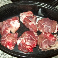 Preheat your kitchen oven to 175c Cut the lamb leg or should into chucks, you should get about 5 or 6 peices. If using lamb shanks leave them whole. Place the lamb pieces in a large casserole dish which has a tight fitting lid. Add about an inch of water to the casserole dish. Don’t submerge the lamb completely. The water stops the meat from sticking. Sprinkle in the oregano, stock cube and add bay leaves. Mix and turn the meat to coat. Sprinkle a little salt and ground pepper in. |